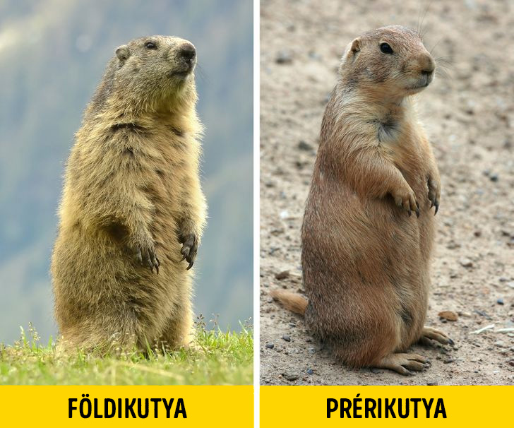Ikrek lennének? Nos, ha közelebbről is szemügyre vesszük őket, akkor észrevesszük, hogy ezek az állatok távolról sem azonosak. Igaz, hogy mindketten a mókusfélék családjába tartoznak, és ennek köszönhető a sok hasonlóság, de a prérikutyák mégis kisebbek, lábaik pedig rövidebbek, mint a földikutyáknak. A földikutyáknak egyébként lapos fejük van, és jóval robusztusabb méretük.