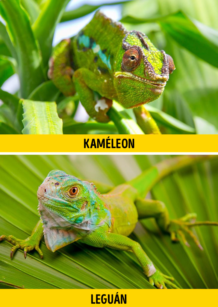 A legkülönbözőbb dolog köztük a szemük. A kaméleonok szeme – a leguánoktól eltérően – egy sötét pontból áll, amit az alsó és felső szemhéjuk vesz körül, és különböző irányokban tudják mozgatni. A leguánoknak ezzel szemben normális szemük van, mint a többi gyíkfélének.