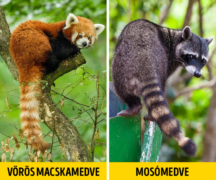Az egyszerűség kedvéért a legnagyobb különbség közöttük valóban az, hogy az egyik vörös, a másik pedig fekete. A vörös panda orra azonban jóval laposabb, mint a mosómedvéé, a szeme körüli foltok, pedig fehérek, nem pedig feketék.