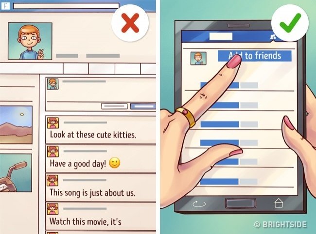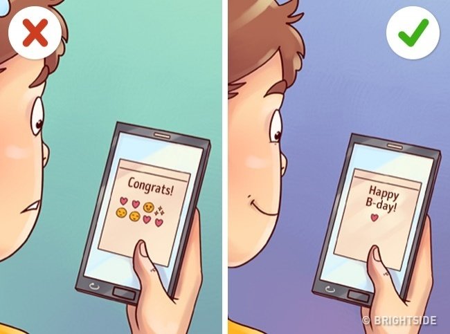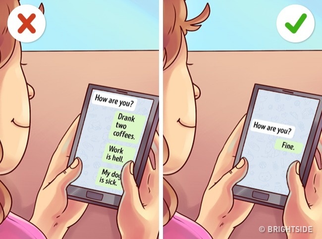 9. A szmájlik és matricák jól jöhetnek, ha a barátnőddel trécselsz éppen, de egy igazi férfi komolytalannak titulálhat miattuk, és innentől kezdve le fogsz csökkenni a szemében. Igaz a mondás tehát: a kevesebb, néha több!