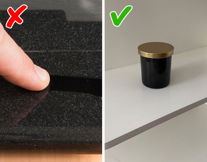 Hasonló a helyzet a fölöslegesen túlbonyolított fogantyúkkal is, melyek mélyedéseiben ugyanúgy összegyűlik a piszok és nehezebbé, hosszabbá teszik számunkra a takarítást. Válasszunk helyettük egyszerű, könnyen tisztítható fogantyúkat.