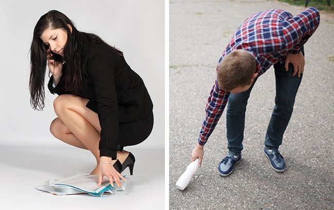 2. A nők leguggolnak, míg a férfiak inkább lehajolnak valamiért, ha fel akarják venni azt a földről.