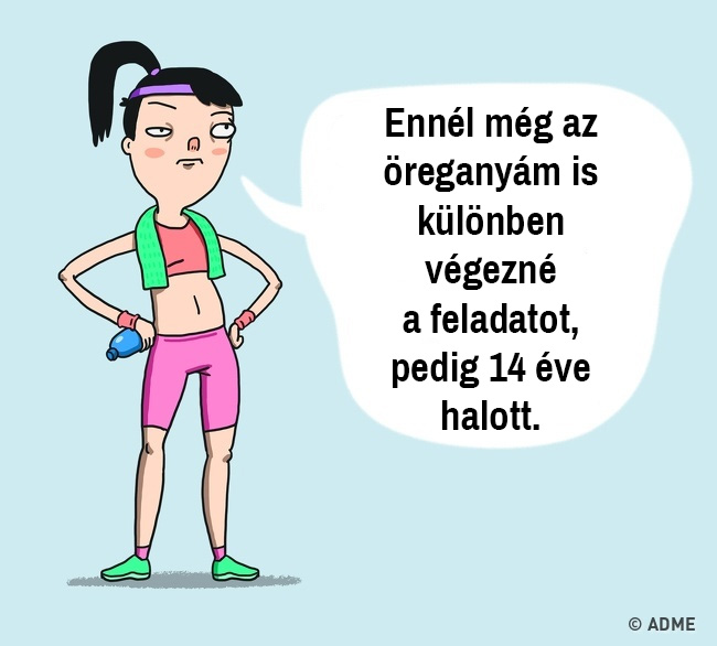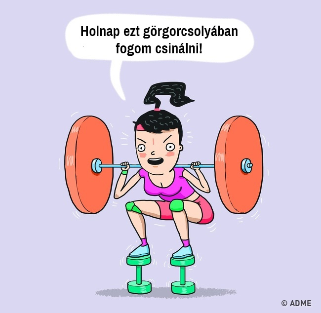 10. Őrült fitnesz-mániás. Az egyszerű gyakorlatokra mély megvetéssel tekint, és amikor már azt hinnénk, hogy nem lehet tovább bonyolítani az egyébként is tökéletesen fölösleges szenvedését, ő mindig rátesz egy lapáttal.