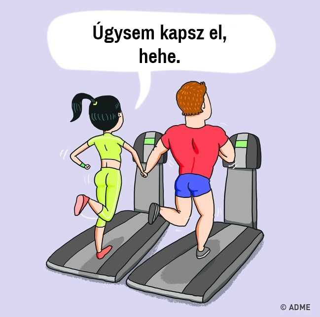 6. Összenőtt szerelmespárok. Együtt vannak bánatban, örömben és természetesen a kondigépeket is együtt, vállvetve használják. Társas lények, akik egyedül valószínűleg elpusztulnának.