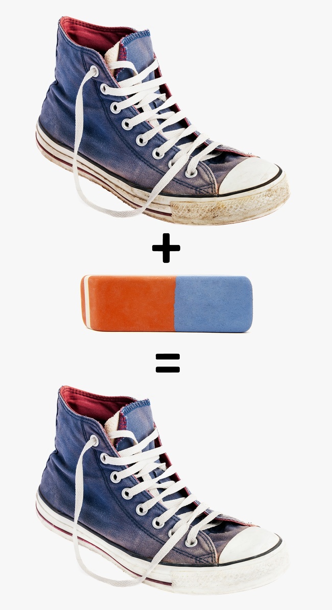 2. Ha azt szeretnénk, hogy a kedvenc tornacipőnk fehér részei újra fehérek legyenek, csak dörzsöljük jó alaposan át egy radírral.