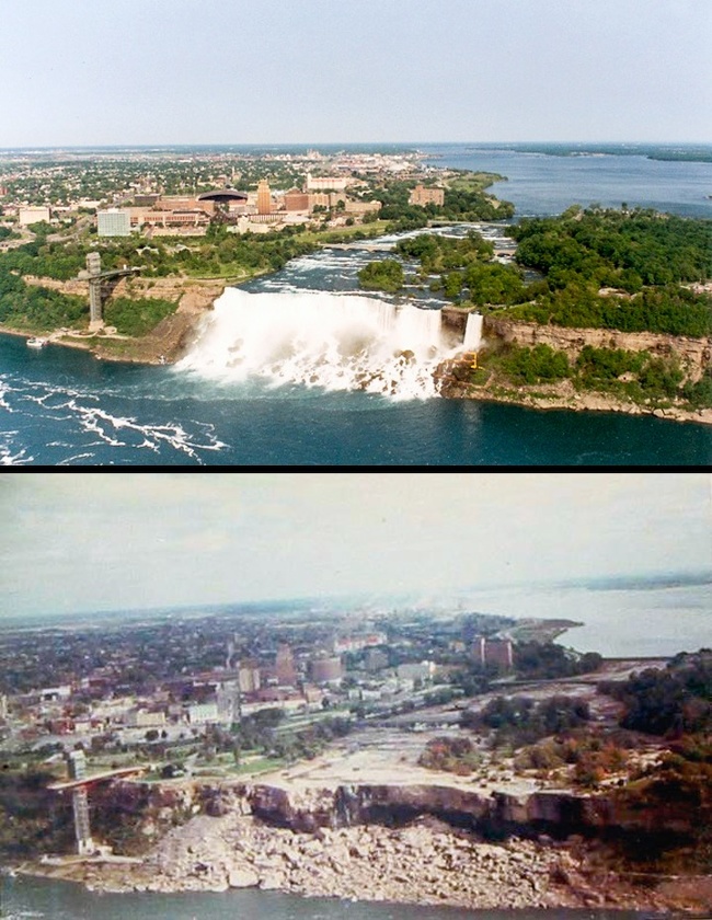 1969 őszén és telén, közel fél éven keresztül víz nélkül maradt a Niagara-vízesés, mert az amerikai hadsereg mérnökei “elzárták” a vizet, így a hatalmas zuhatag utánpótlás nélkül maradt. Az ideiglenes elterelésre a folyómeder vizsgálata, a sziklafal strukturális vizsgálata miatt volt szükség. A folyó elterelése után részletesen felmérték a sziklafalat, és megállapították, hogy ott az erózió nagyon komoly károkat okozott és okozhat a jövőben is. Eredetileg a lehullott sziklatörmeléket is el akarták volna hordani, de utóbb lemondtak róla, mert nagyon sokba került volna. A hihetetlenül ritka esemény természetesen még több turistát vonzott, mint eddig bármikor.