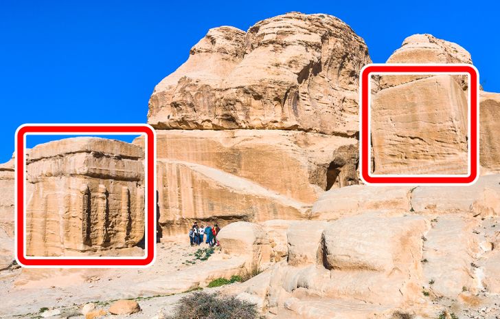 Petrában sok minden még mindig rejtélynek számít. Ezek közé tartoznak például a város bejáratánál található hatalmas kövek. Senki sem tudja, hogy miért építették őket, vagy milyen jelentőségük volt. Csak legendák léteznek arról, hogy állítólag olyan dzsinnek laktak bennük, akik segítettek védeni az ősi várost.