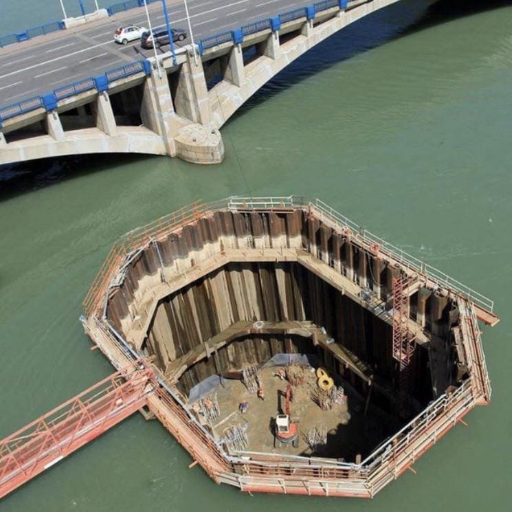 7. Ilyen hátborzongató szerkezet segítségével alapozzák a hidak lábait a vízen.