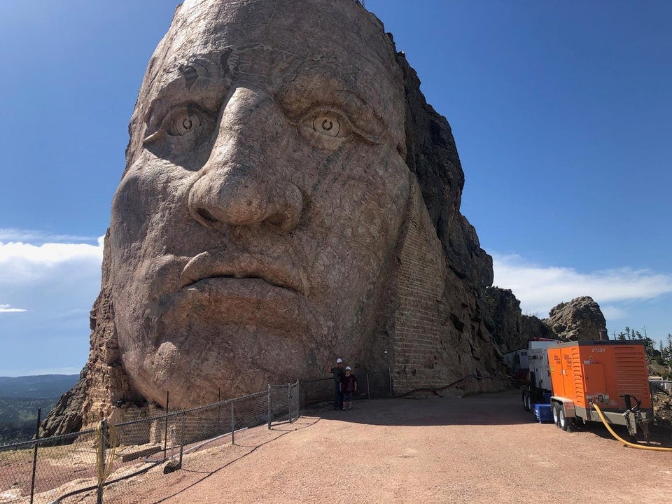 Az Oglala indián törzs főnökének tiszteletére sziklába vájt arc 10 méterrel nagyobb, mint a Rushmore-hegyen található elnökök arcképe, ám sosem készült el teljesen.