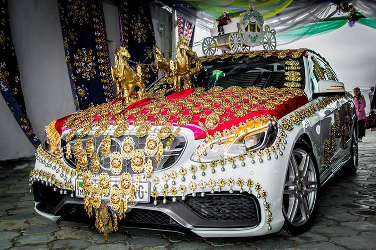Az esküvői autókat illetően vannak speciális hagyományok. A népszokás szerint kötelező különleges és drága ékszerekkel díszíteni őket – lehetőleg minél több arany ékszert felhasználva.