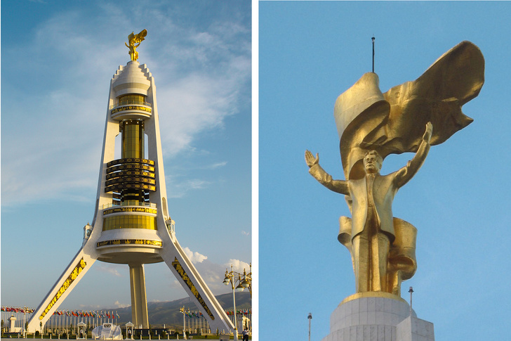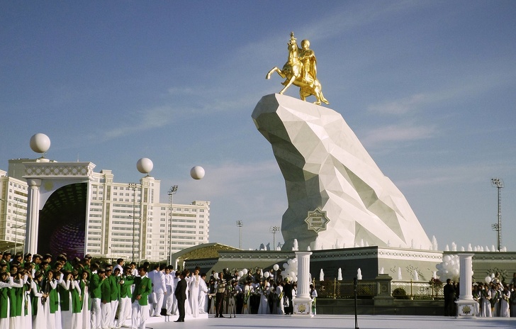 2015-ben például egy grandiózus emlékművet avattak, mely az elnököt ábrázolja egy lovon ülve. Azok számára, akik esetleg jártak már Szentpéterváron, a szobor nagy valószínűséggel ismerős, a város bronzlovas emlékműve ugyanis majdhogynem megszólalásig hasonló, a különbség csak annyi, hogy a türkmén műemlék tömör aranyból készült.