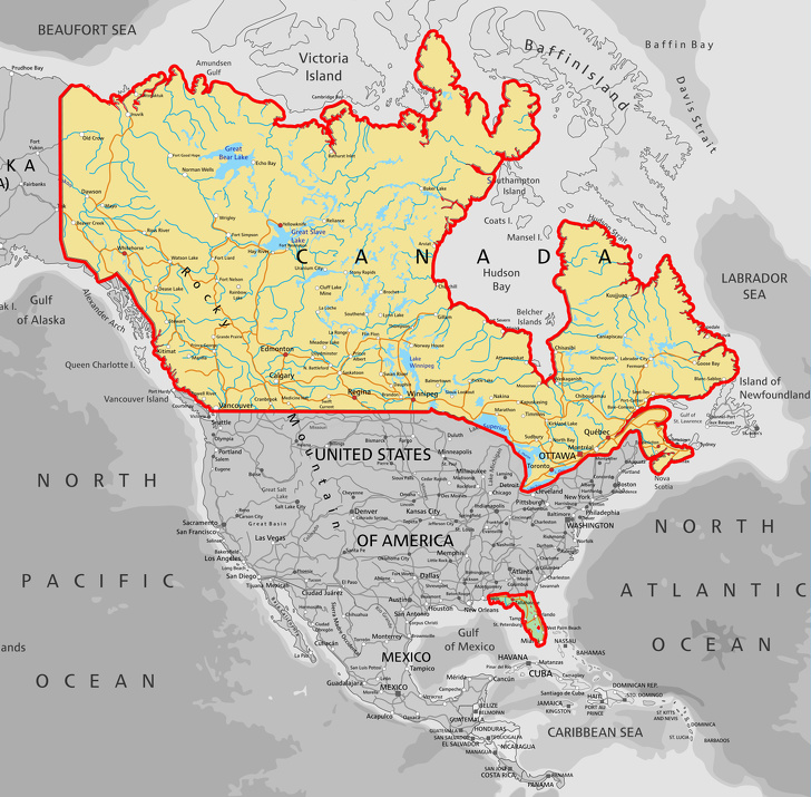 9. Kanada lakossága kisebb, mint az Egyesült Államokban található Florida államé.