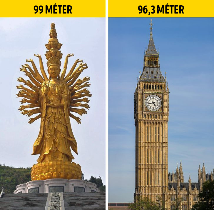 Ez a szobor Sanyában, Kína déli partjánál található. Szintén Guanyin-t ábrázolja, és ha hozzászámoljuk a nagyjából 30 méteres alapját, akkor a szobor teljes magassága 108 méter, vagyis majdnem akkora, mint egy amerikai focipálya. 6 évre és több tízezer emberre volt hozzá szükség, hogy 2005. április 24-én megnyithasson a látogatók előtt.