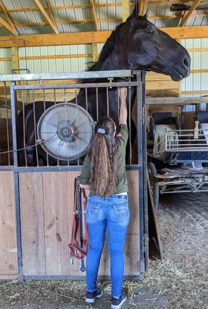 2. Ez a fenséges állat itt egy percheron fajtájú ló, ami egy Normandiából származó hidegvérű lófajta. Összehasonlításképpen: a képen látható lány magassága 165 cm.