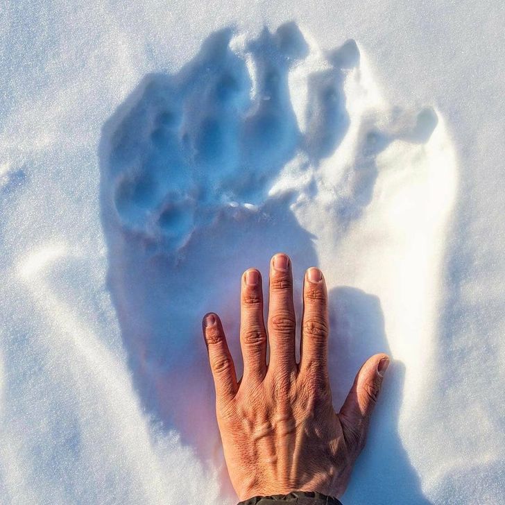 9. Egy ember keze egy medve mancsához képest.