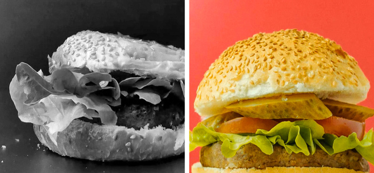 A szendvics- és hamburger-reklámok felvétele már tényleg komoly kihívás. Ezeknek a sokemeletes ételkülönlegességeknek az egyben tartása és azok étvágygerjesztő bemutatása ugyanis egyáltalán nem könnyű feladat. A szakemberek épp ezért sokszor nem is igazi alapanyagokat, hanem mesterségesen előállított szivacsból és műanyagból készült kellékeket használnak, amiket fogpiszkáló segítségével rögzítenek egymáshoz.