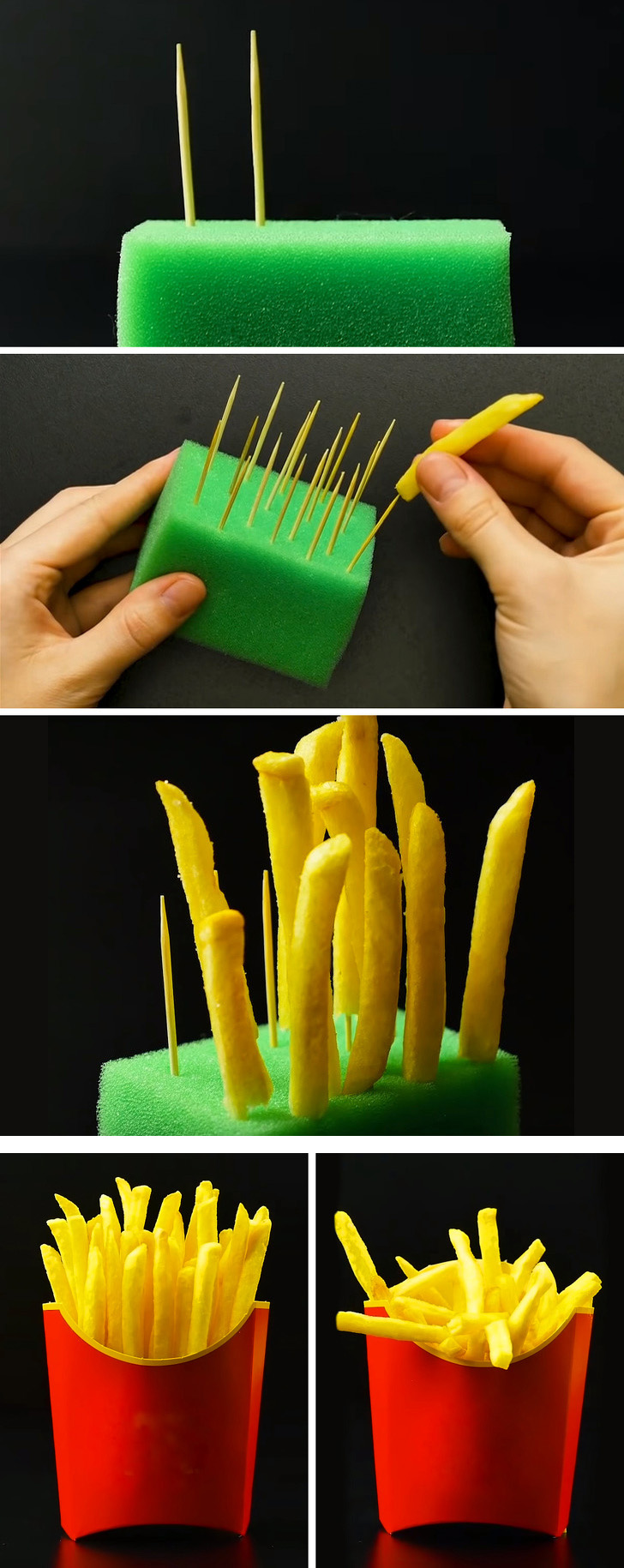 Ha valaha is jártál már gyorsétteremben, akkor tudhatod, hogy nemcsak a hamburgerek, de még a sült krumplik sem úgy néznek ki soha, mint a reklámfilmekben. Ez azon egyszerű okból kifolyólag történik, hogy a reklámokban még a sült krumplit is gondosan előkészítik: a szemeket egyenként, szivacsba szúrt fogpiszkálókra húzzák, hogy tökéletesen mutassanak a képernyőn és ne dőljenek össze-vissza.