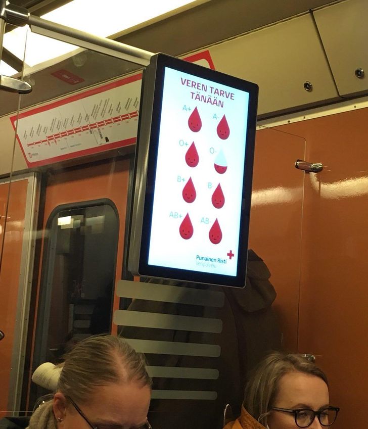 9. ,,A metróban a Vöröskereszt folyamatosan tájékoztat arról, hogy mely vércsoportokra van a legnagyobb szükség az országban.”