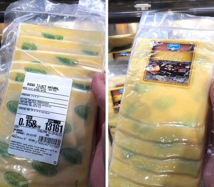 16. A sajt csomagolásán lévő logós minta miatt olyan, mintha penészes lenne a sajt.