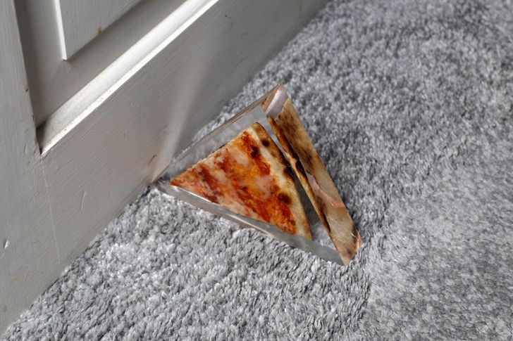 7. Epoxi ajtókitámasztó, a belsejében egy valódi pizzaszelettel.