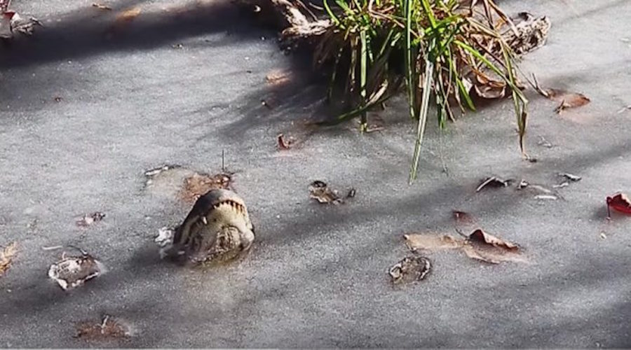 11. Jégcsapdába esett aligátor. (az állat túlélte, és jól van)