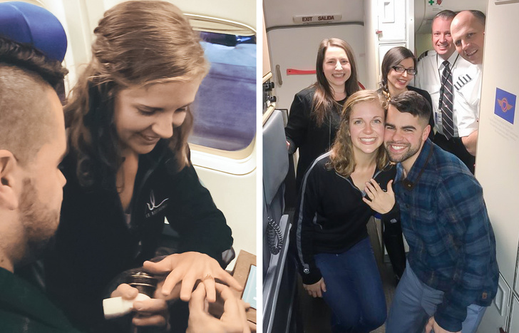15. A lány felszállt a repülőgépre, hogy a barátja után repüljön, de a felszállás után a barátja hirtelen megjelent a fedélzeten, és megkérte a kezét.