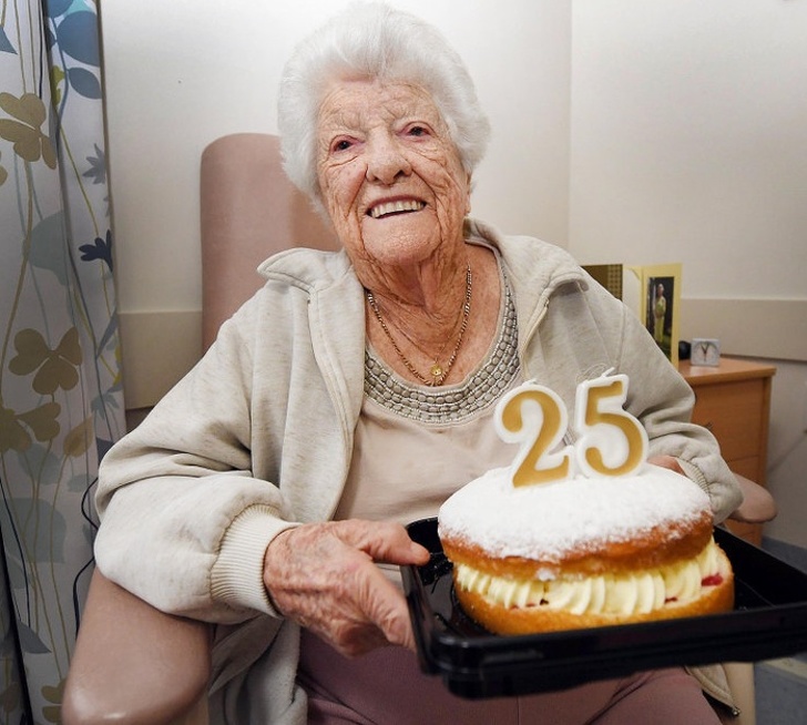 11. Ez az 1920. február 29-én született nő épp a 25. születésnapját ünnepli.