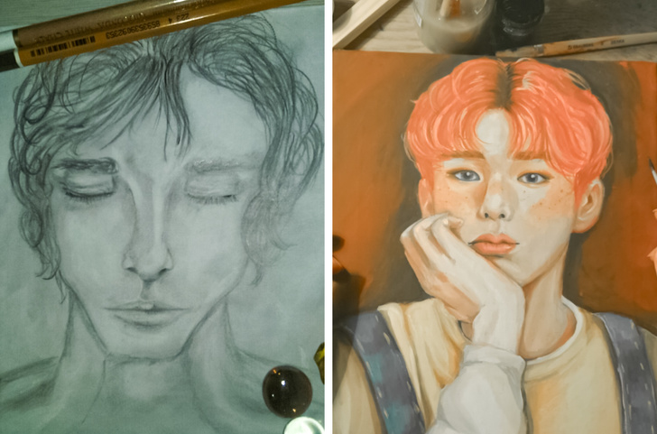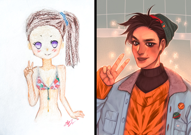 18. ,,Így visszanézve már elmondhatom, hogy megérte annyit gyakorolni a rajzolást. Az első kép 2013-ban készült, a második 2020-ban.”