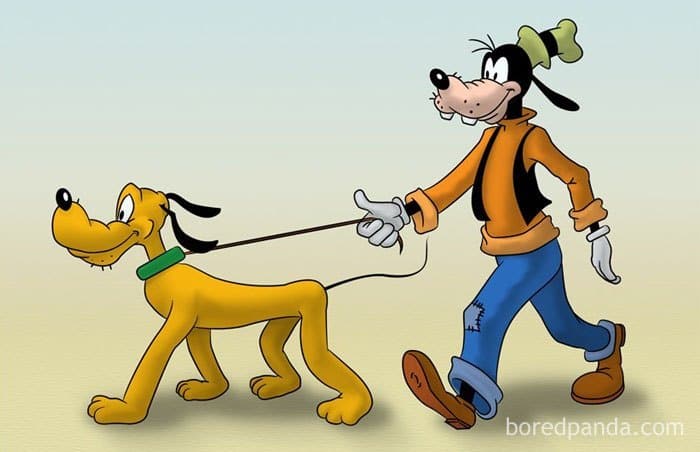 10. A ruhába öltözött kutya sétáltatja a meztelen kutyát, ráadásul pórázon. Elég bizarr.