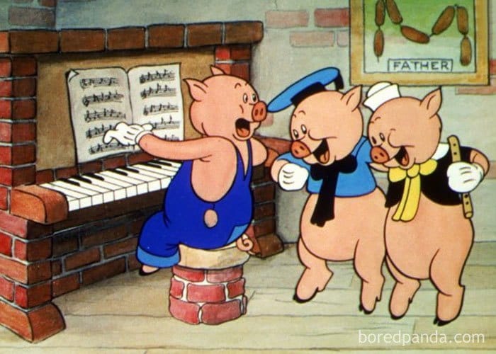 3. Vígan dalolászó kismalacok annak ellenére, hogy az apjuk hurkaként lóg a falon.
