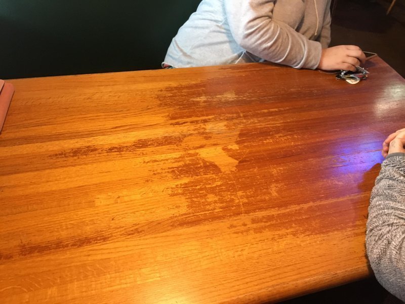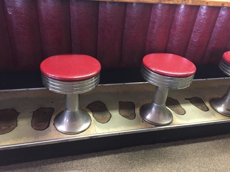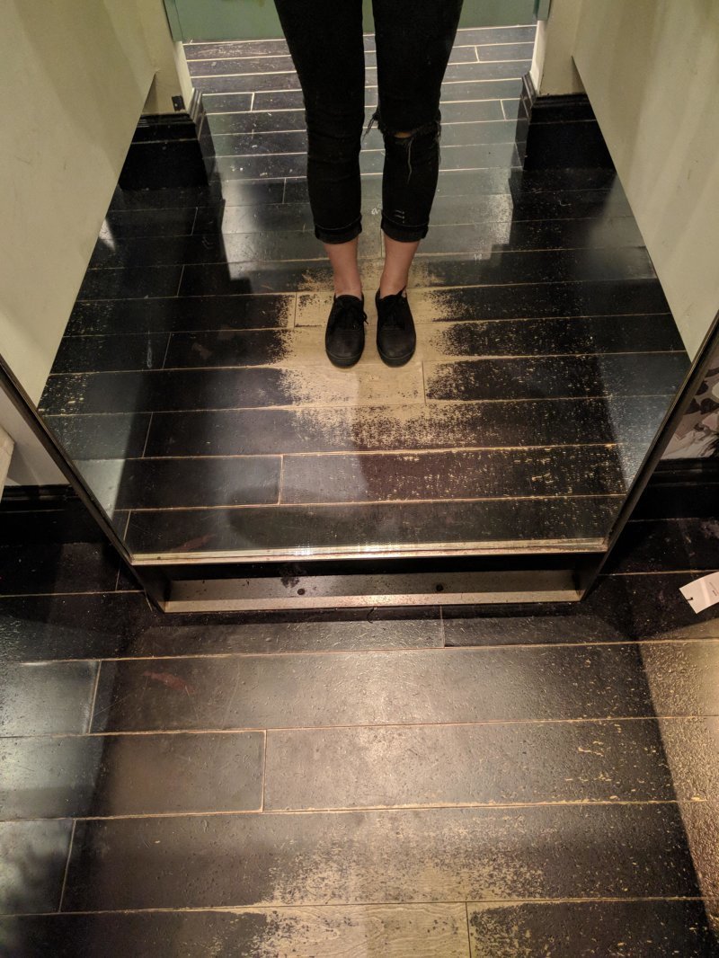 17. A vendégek lábai alatt kikopott padló egy bárban.