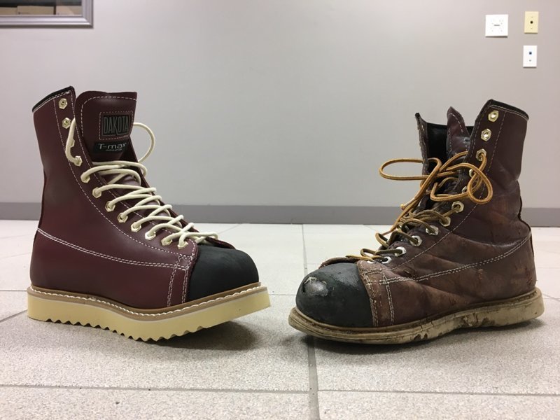 19. Egy teljesen használatlan Dakota bakancs és egy hosszú éveken át hordott változat, ugyanabból a típusból.