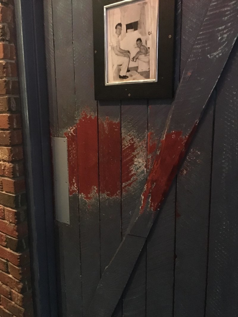 5. Egy bár mosdójának ajtaja, amin jól látható, hogy hol érnek hozzá a vendégek legtöbbször.