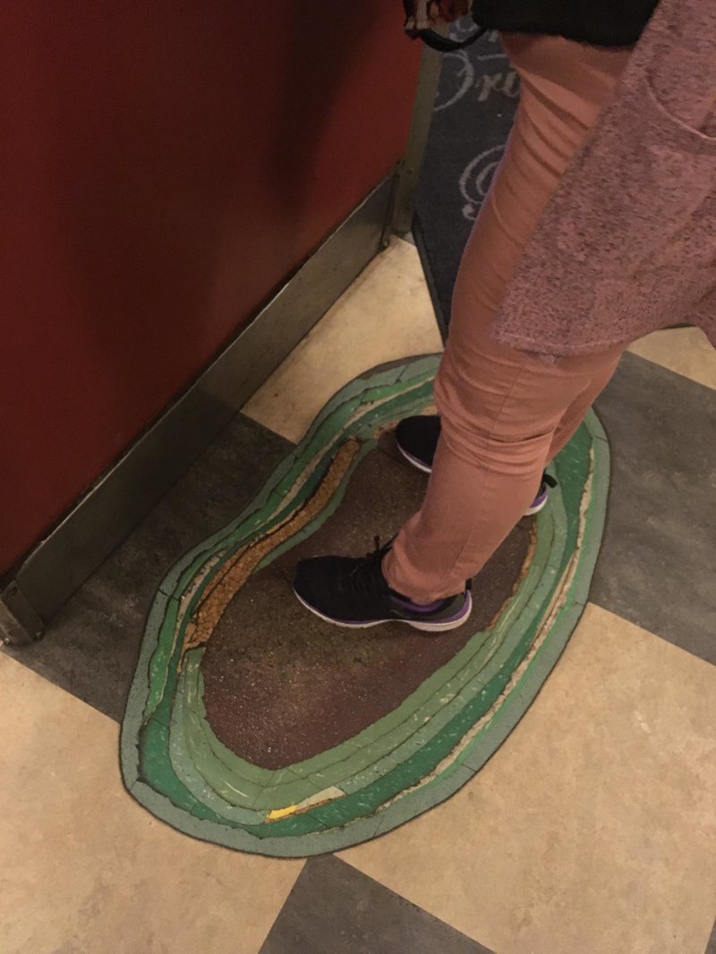 6. Az évek során lerakott és kikopott padlók egy pénztár előtt.