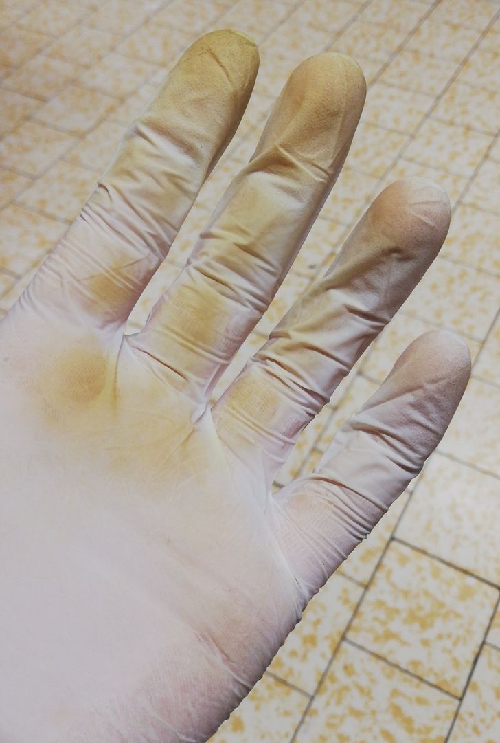 4. Egy ékszerész keze a többórás polírozószerekkel történő munka után.