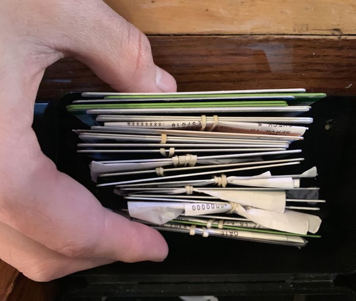 16. ,,Az elvesztetett személyigazolványok és bankkártyák, amiket a bárunkban találtam a Szent Patrick napi buli után.”