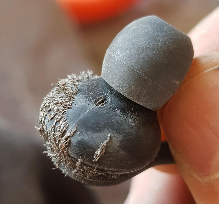 11. Fülhallgatón megtapadt vasreszelék, egy építkezésen végzett munka után.