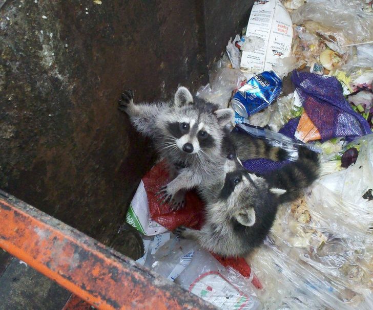 10. ,,Szemétszállító vagyok, és minden nap ilyen kíváncsi mosómedvéket kell kimentenem munka közben.”