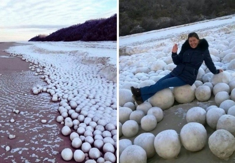 3. Egy szibériai tengerparti falu lakói egy nap több ezer ilyen tenger formálta jég-gömbre ébredtek.