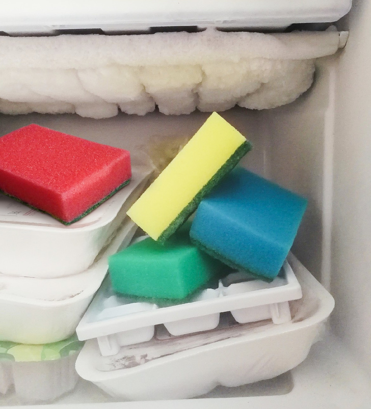 2. Mindig legyen néhány nedves szivacs a fagyasztóban, ezek bármikor jól jöhetnek, ha véletlenül megütjük magunkat és jeges borogatást kell tennünk valamelyik testrészünkre.
