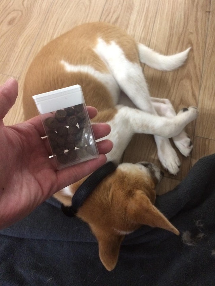 5. Egyszerűen magunkkal vihetjük a sétáláshoz a jutalomfalatokat, ha egy üres TicTac tartóba tesszük azokat – így a kutyust sétálás közben is taníthatjuk.