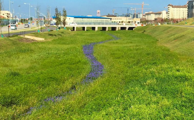 6. A lila virágok miatt olyan, mintha víz csordogálna a csatornában.