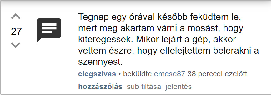 21. ,,A mosógépem kinyírta a ruhámat.”