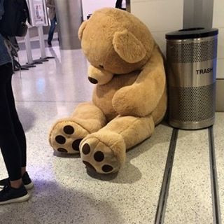 10. Ez a bánatos mackó túl nagy volt hozzá, hogy a gazdájával repülhessen.
