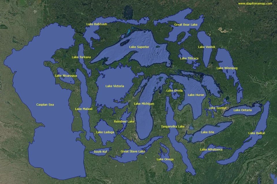 14. A bolygó 25 legnagyobb tava, egymás mellé rakva az összehasonlítás végett.