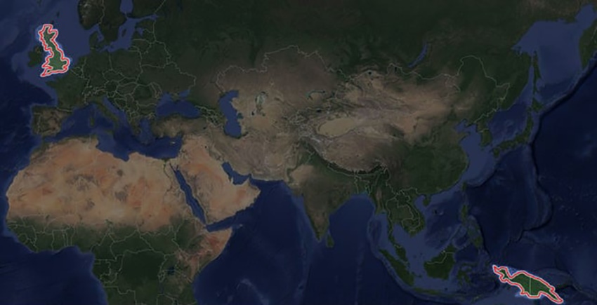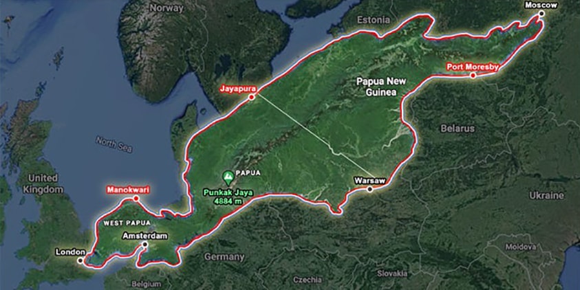 18. Új-Guinea szigete a térképen aprónak tűnik, pedig a valóságban hatalmas.