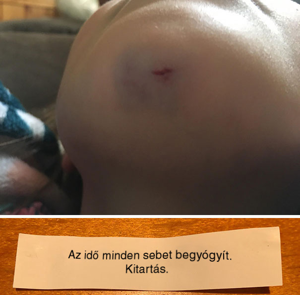 4. „A kislányom ma beütötte a térdét játék közben. Ebéd közben a következő üzenetet találta a szerencsesütiben…”