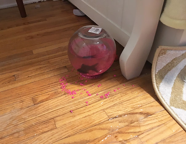 20. ,,A macskám lelökte az akváriumot, és nemhogy nem tört össze, de még csak ki sem folyt, mert pont az üveg szájára esett…”