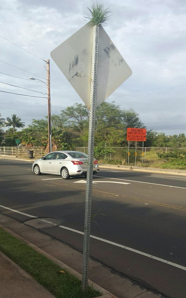 4. Egy fűcsomó, ami végignőtt az oszlop belsejében és kibújt a tetején.