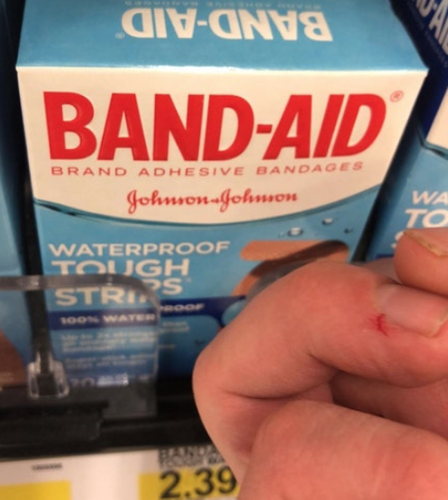 6. Egy sebtapasz csomagolás, ami pofátlan módon megvágta az emberünk ujját.